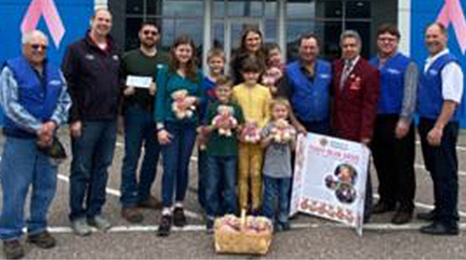 Weelborg Chevrolet in New Ulm donated $3,000 to the Knights of Columbus Teddy Bear Drive to raise funds for Ellanor Siefkes, who is undergoing a bone marrow transplant. Online donations can be sent to: hosvhub.com/stmarysleepyeye/giving/funds/kc-benefit. Pictured from the left ...
