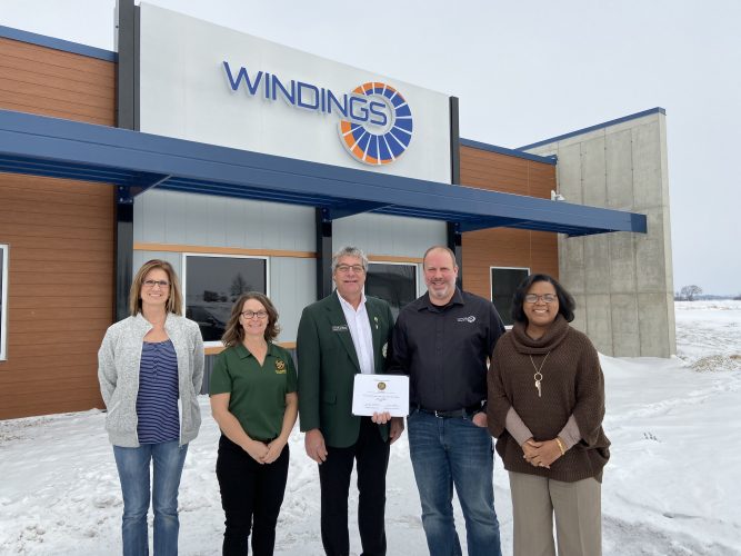 The Willkommen Committee of the New Ulm Area Chamber of Commerce stopped to visit the new Windings building at 15 Somsen St. Windings has purchased the building that used to house Elkay, and has remodeled and expanded it by adding over 10,000 square feet.