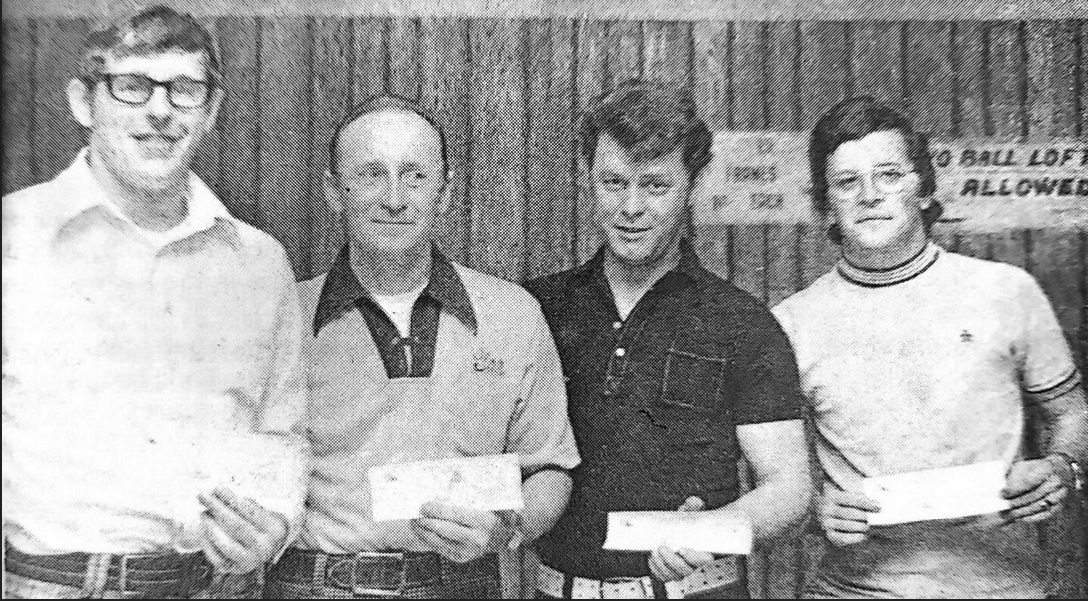 TOP FOUR FINISHERS in order in the Concordia Lanes holiday bowling tournament Saturday were, left to right, Bob Rhodes, Gardell Kuelbs, Doug Miklas and Jim Bastian.