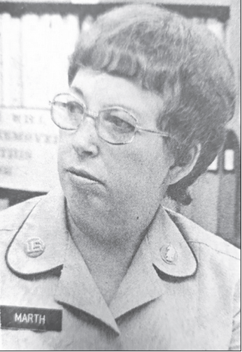 SHE IS ONE of about 140 women in the National Guard in Minnesota. Most of those are assigned to units near the Twin Cities. But Spec. 5 Marth think many more women will be entering Guard in the future.