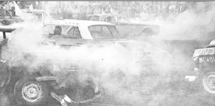 - DEMOLITION DERBY drivers smash each other’s cars to smithereens as the crowd yells with the excitement at the annual demolition derby Wednesday night at the Brown County Fair.
