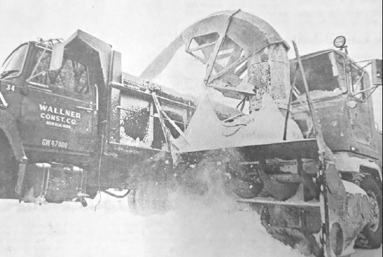 DIGGING OUT—New Ulm street crews were out early this morning removing snow. Snow is blown into trucks, then dumped near the Minnesota River at the end of Center Street. (Art Hanson photos)