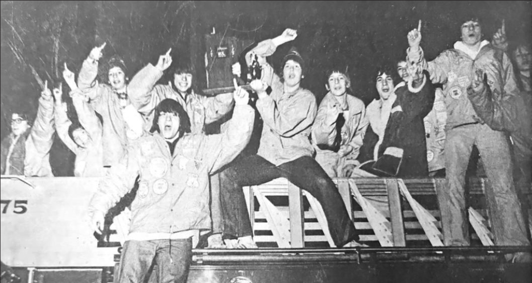 NEW ULM’S state champion Bantam B hockey team climbed on the fire truck as part of their welcome home Sunday night. Bantam players are, from left, Peter Anderson, Vince Dietz, Mark Thompson, Paul Macho, Peter Macho, Tom Leske, Scott Zeig, Mark French, Terry Steinbach, Jeff Schugel and Steve Sturm. Members not pictured are Jeff Sevcik and Bryan Stucky. Photo by Art Hanson, New Ulm Daily Journal March 22, 1976