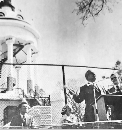 Dr. Goppel said he was fascinated by the Lower Sioux Agency Interpretive Center near Morton and would have liked to spend four or five hours there. His interest kept him there long enough to fall 30 minutes behind schedule, which eventually meant the motor tour of Schell’s deer park had to be cut from the itinerary.