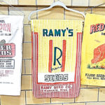 Ron Kelsey displays some of his favorite seed sacks.