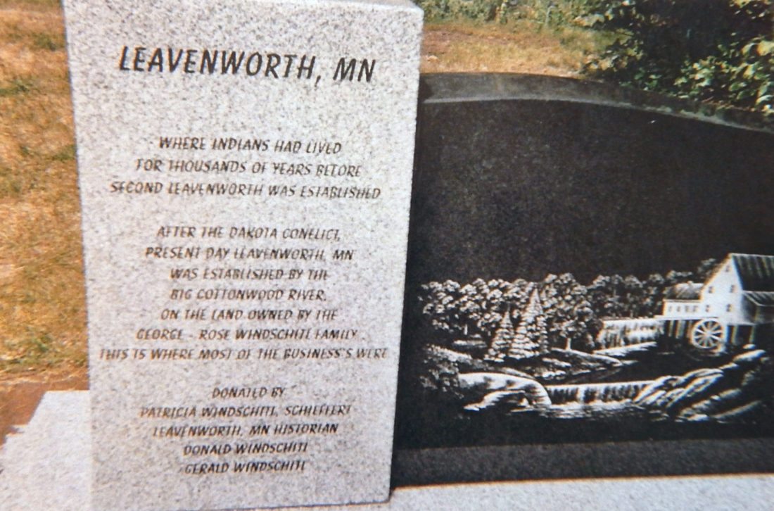 After the Dakota Conflict, the second Leavenworth was established on the Big Cottonwood River on land owned by the George and Rose Windschitl family, according to a historical marker placed on George and Rose Windschitl’s land in 2012. The footings of several stores remain on the land.