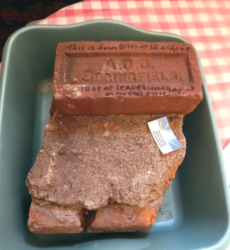 - A brick from the District 12 school at Leavenworth is part of Schieffert’s collection of Leavenworth artifacts.