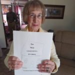 Patricia Windschitl Schieffert holds a rough draft of her book “The Three Leavenworths Minnesota.”