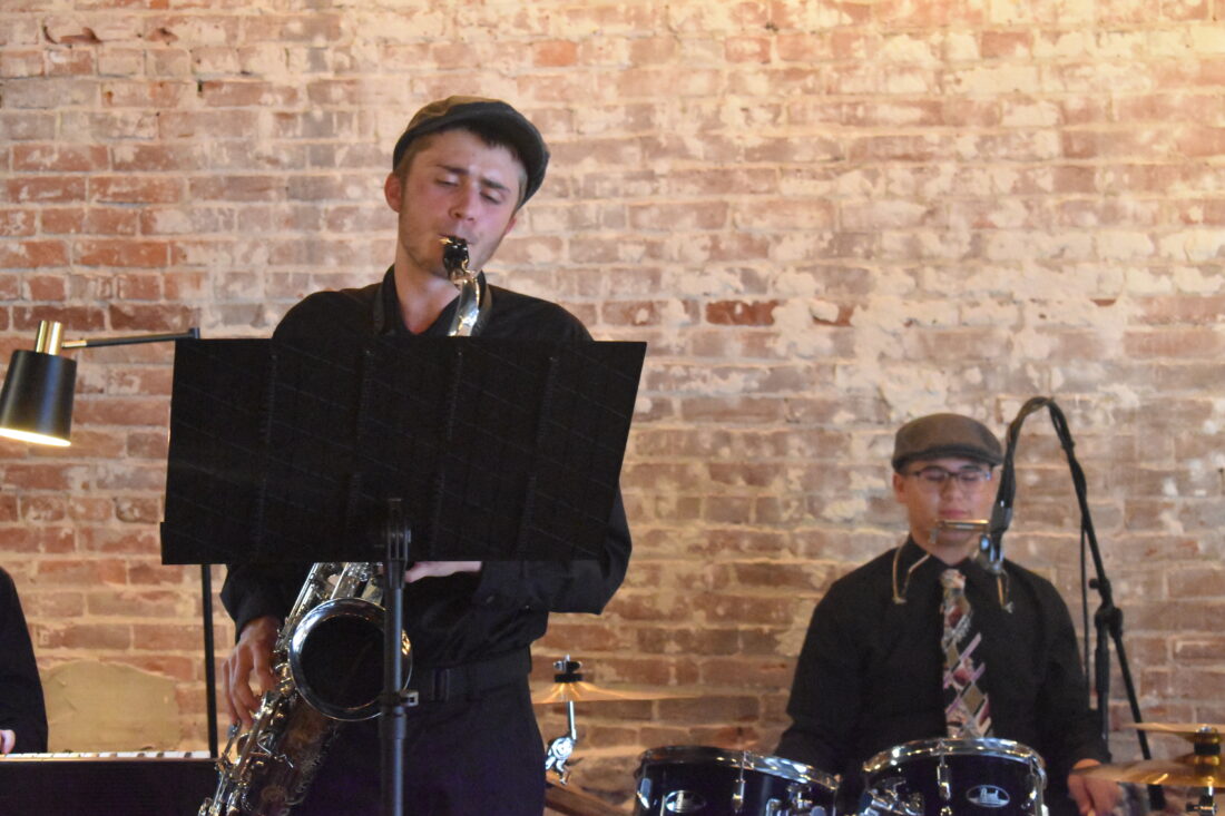 Mitchell Schotzko plays the sax with Joey Kotten on the drumbs
