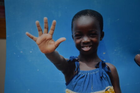 - Submitted photo An African girl wearing a dress sewn by Little Dresses volunteers waves at them.