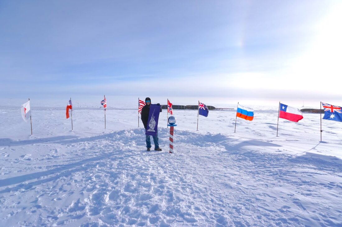 And when he works at the South Pole, a purple Herman the German banner waves in the Antarctic wind — a small piece of home in the most remote workplace on Earth.
