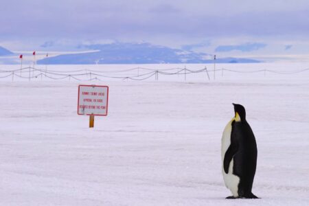 An emperor penguin just outside the clearance zone of Phoenix runway. Photo taken by David Keller.