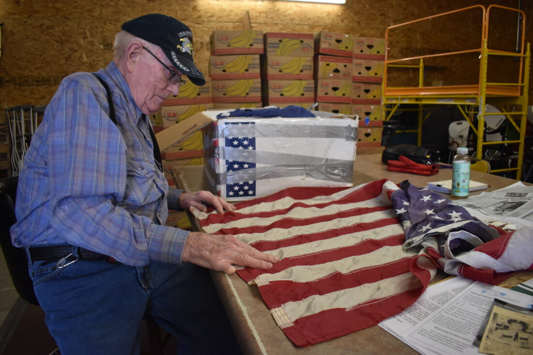 Now days, he is most often mending torn flags flown by veterans organizations and other entities.
