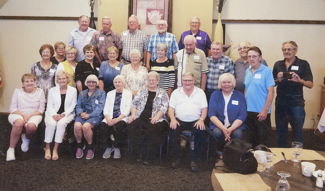 On Sept. 3, the 1960 graduating class of New Ulm High held their 58th “Minnie Reunion” At the New Ulm Country Club. Those attending were: Row 1: Joyce (Borchert) Wilking, Cathy (Clobis) Steinkopf. Tricia (Lindemann) Sticha. Janice (Buggert) Griebel, Elizabeth (Rewitzer) Kretsch, Al Altmann, Carla ( Stelljes) Evans. Row #2: Margaret (Altmann) Albrecht, Rita (Thill) Kollmann, Sylvia (Schwermann) Schuer, Kathy (Keckeisen) Durkot, Karen (Janni) Zangel, Marjorie (Blaalid) Buerkle, Kathryn (Jeske) Pringle, Gary Mueffelmann, Doug Henke, Gerry Tobias, Merle Frank, Charles Fleck. Row #3: Buzz Arndt, Dean Linquist, Tom Ubl, Jerry Steinkopf.