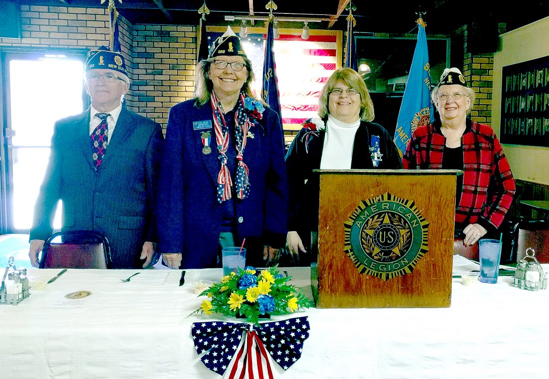 Submitted photo Legion Post 132 celebrates 100 years American Legion, Post 132 of New Ulm celebrated its 100th birthday with a party, held March 17th at the Legion Clubrooms in New Ulm New Ulm. From left are Roger Hoffmann (First Vice Commander), Cindy Brunk (Second District Commander), Kathy Hempel (Auxiliary President), and Bert Marth (Post 132 chaplain).