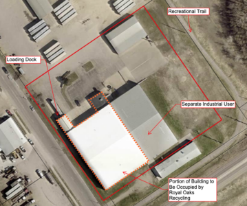 An overhead view of the 810 N. Front Street building. Royal Oaks Recycling will be leasing a section of the building to use as recyclable transfer site. Submitted photo