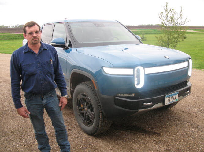 Rural New Ulm welder and farmer Tad Ulrich bought a brand new Rivian all-wheel drive pickup that was delivered to his door a couple years ...