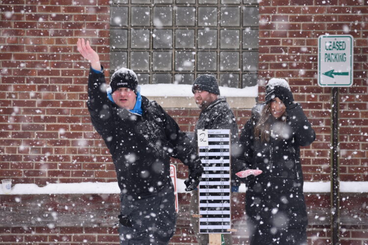 NEW ULM — Thirty-six bean bag teams from as far away as the Twin Cities metro area battled snow flurries for cash prizes in the third annual Baggin’ in the Street Bean Bag Tournament downtown Saturday.