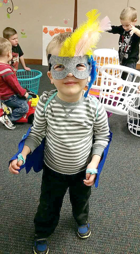 Photo submitted by Hannah Scharf. Charles Schaefer dressed up like a bird while playing with other children during one of the MUMS meetings in the basement St. Paul’s Lutheran Church.