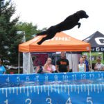 Mark Lyons’ black lab Ozzy takes leap into the dock dogs pool for the speed round.