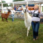 - McKenzie Cselovszki walks the llama “Snowflake” around the pen for the showmanship section of the 4-H llama show.