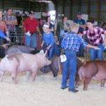 The Swine Show concludes with the Market Barrow competition. Seven barrows and the handlers entered the pen to show their animals one last time. First prize went to Jordan Kieper and Reserve went to Mallory Drake.