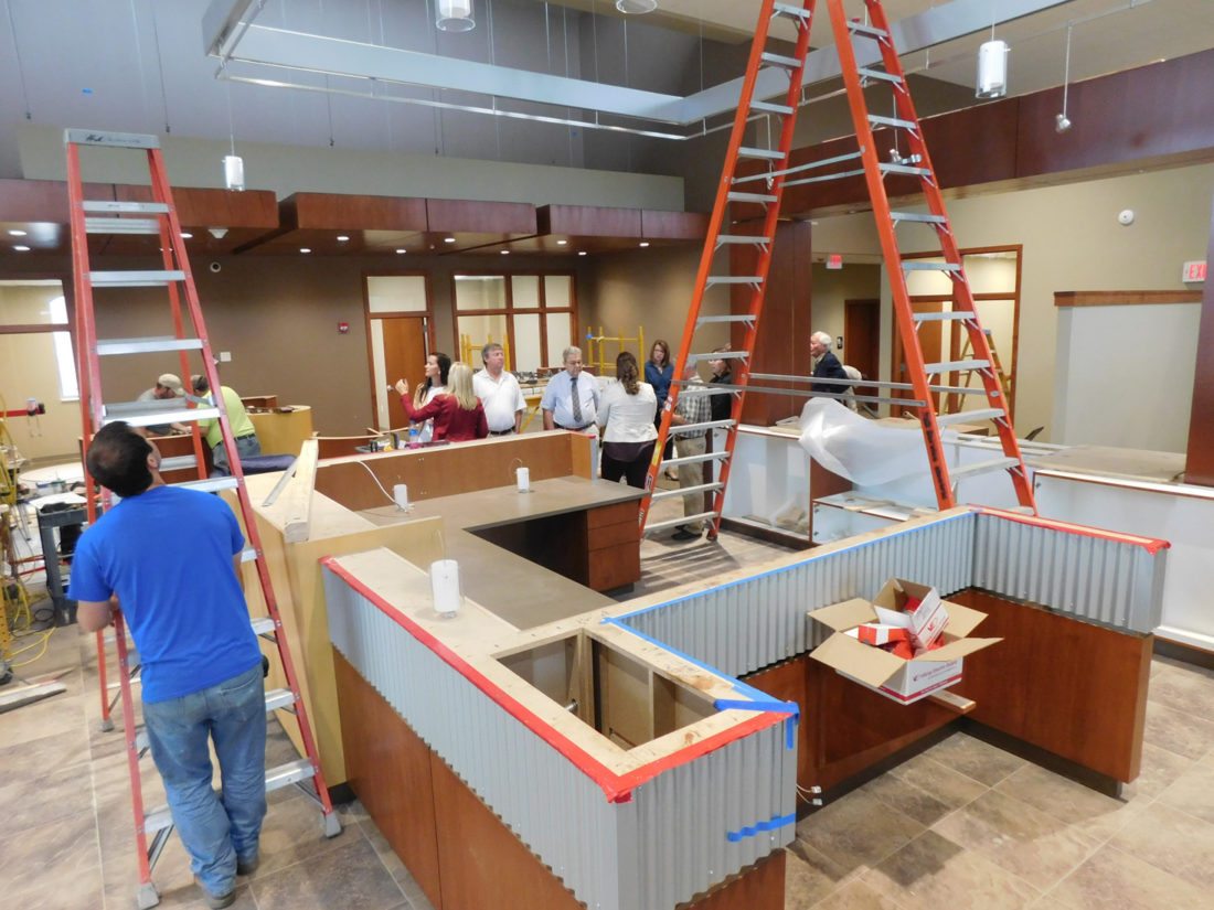 Staff photo by Clay Schuldt Bank Midwest President Shannon Hillesheim gave an early tour of the bank’s new building for members of the Public Utilities Commission and Chamber of Commerce on Thursday.