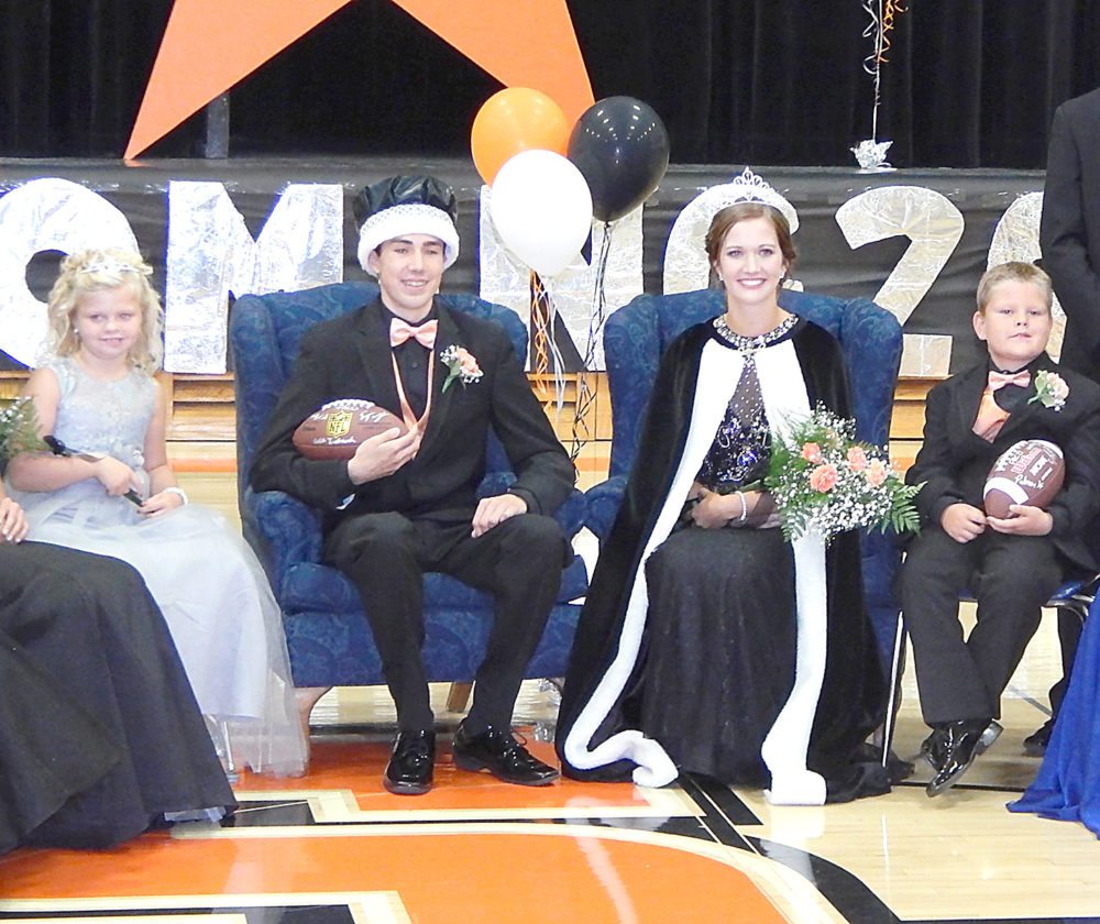 The Sleepy Eye Homecoming Coronation Monday included far left, Junior Attendants Jace Schauman and Jacob Fulmer, far right; and King Zach Haala and Queen Brianna Polesky. The Indians host Adrian on the football field at 7 p.m. Friday.