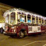 The Schell’s Brewery Brew Crew ride a trolley in the parade.