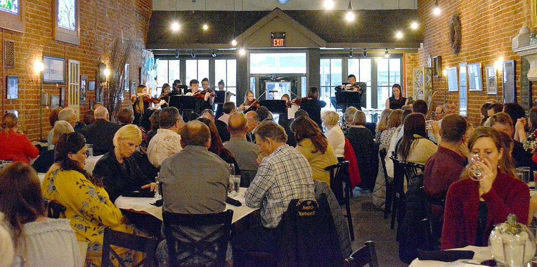 Staff photo by Connor Cummiskey The advanced students from Suzuki School of Music perform for patrons in Lola — an American Bistro for the school’s annual Spring Gala.
