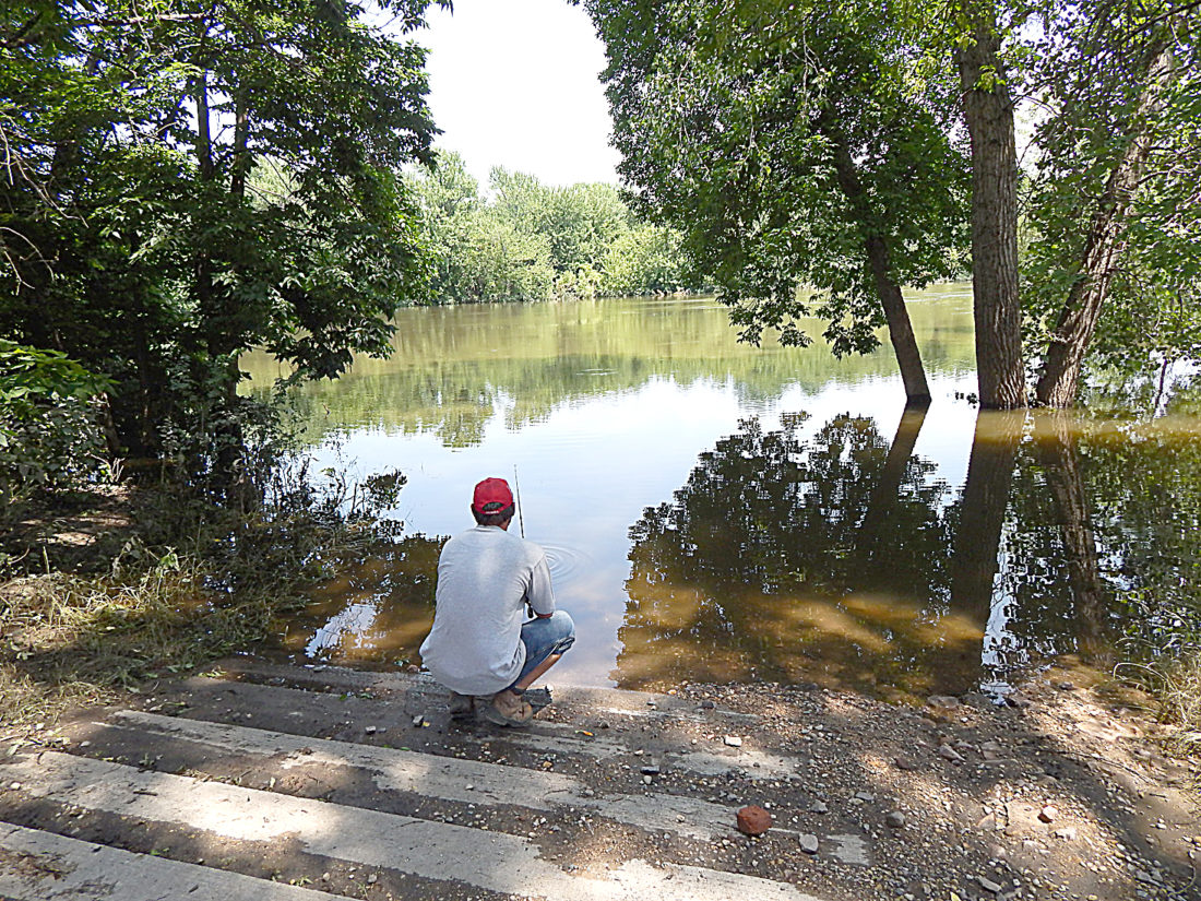 Despite unusually high water levels, a man fishes the Minnesota River at the Riverside Park access July 12.
