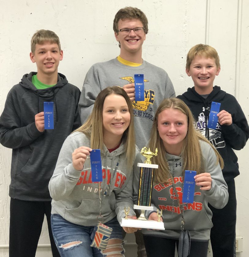 Submitted photo The Sleepy Eye White Junior High Knowledge Bowl team took first in a meet in Mankato Thursday. Pictured, left to right, front, Emma Braulick and Brooke Arneson; back, Adam Johnson, Alexander Joramo, and Gunval Coulson.