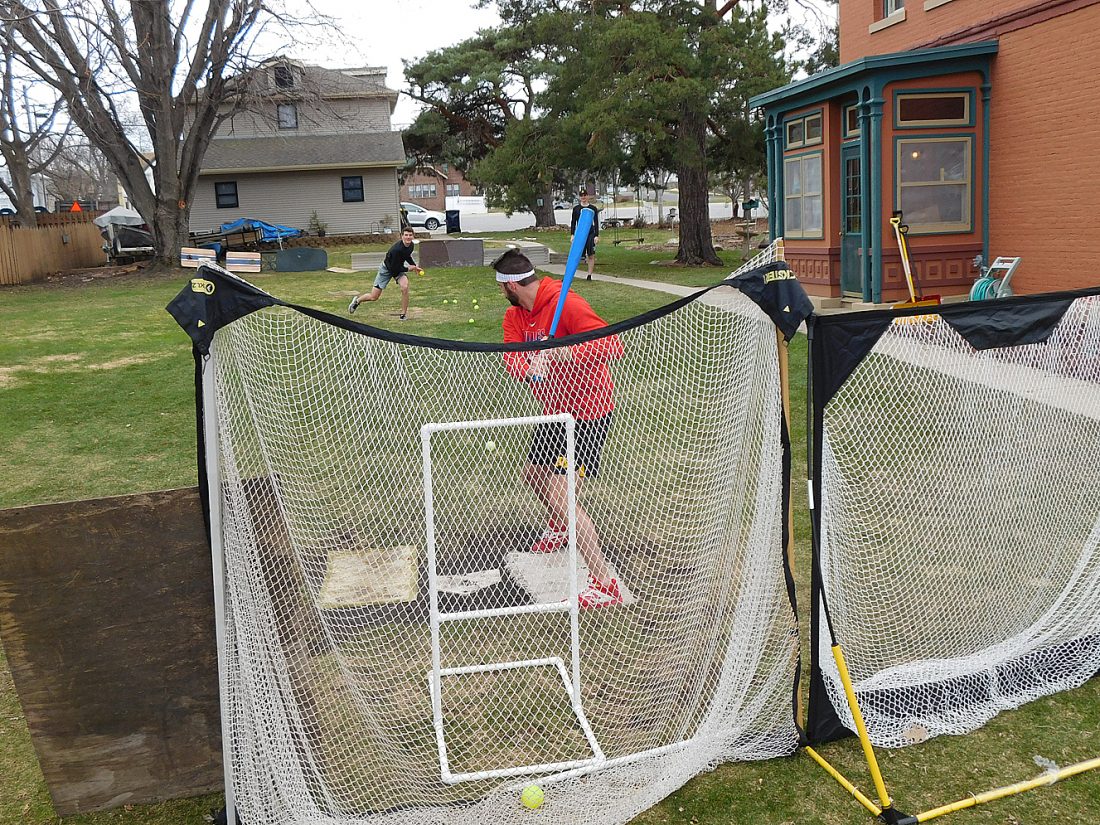 Cabin fever and baseball fever combined on South German Street Friday. The Knowles brothers — Gabe, Chris and Sam — have been playing a daily wiffle ball game in their side yard with friend Nick Lackney. Lackney said they had to find something to do to ride out stay at home. Sam pitches to Lackney, while Chris plays as an outfielder.