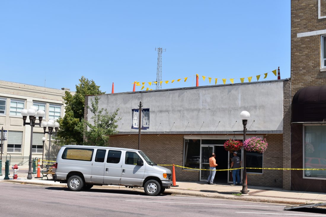 Staff photo by Clay Schuldt Caution tape goes up on the corner of North 2nd Street and Minnesota as work continues at the former Ben Franklin building at 126 N. Minnesota Street.