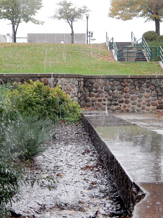 Wednesday morning raindrops streak and splash as they fall off the German Park