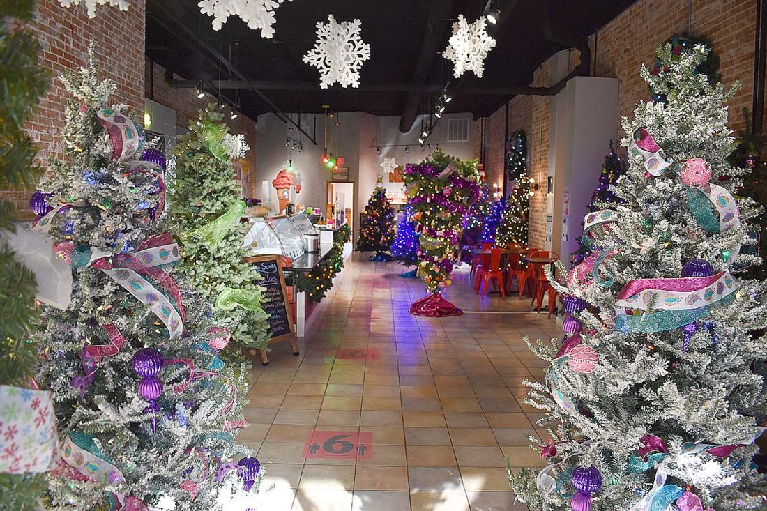 MN Eis got into the fun of shopping opener by sprinkling Christmas trees throughout the shop. The ice cream shop also began selling a few holiday themed flavors, including egg nog.