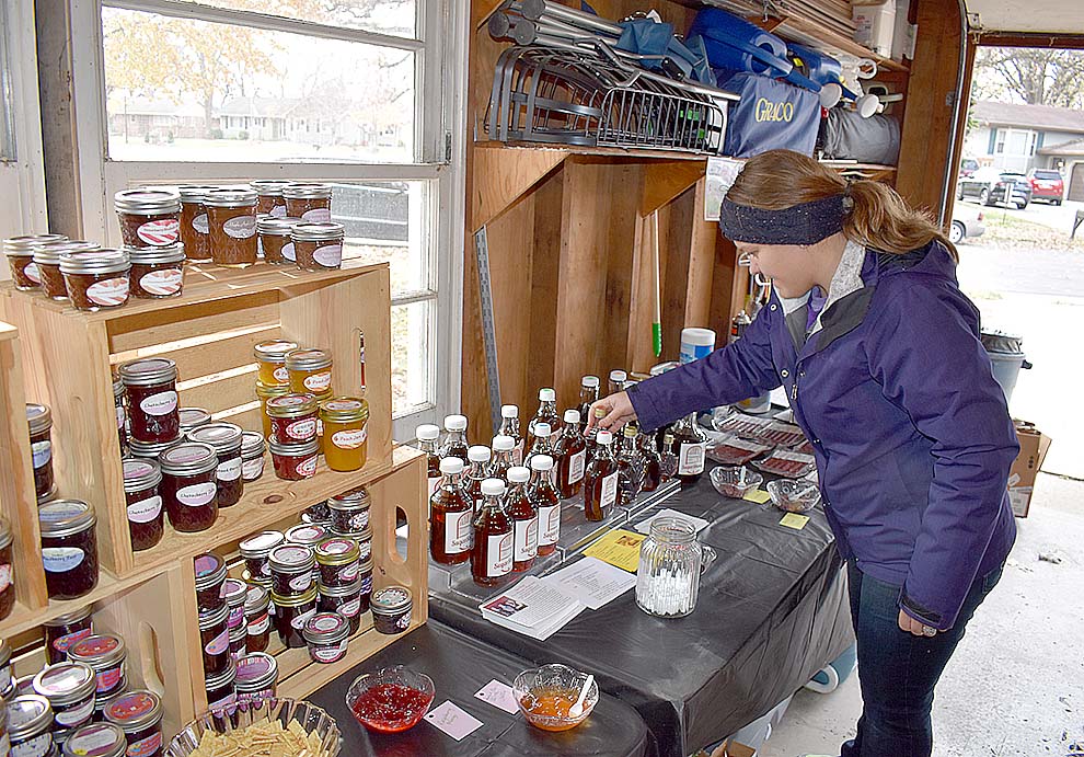- Lori Zoller of the Sugar Shanty, aligns the maple syrup bottles following a rush on the syrup.