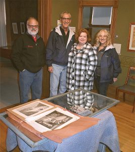 Staff photos by Clay Schuldt Wanda Gag House Association members and J & R Schguel Trucking employees teamed up to bring items belonging to Wanda Gag back to her childhood home. L to R: Lee Knauf, John Meredith, Cara Knauf and Carrie Meredith stand in front a table displaying two original lithographs drawn by Gag and her studio mirror. Below: Wanda Gag lithographs “Snowy Fields” and “Siesta” were included with Gag’s donated mirror. The two lithographs were created by Gag in 1933 and 1937 respectively.