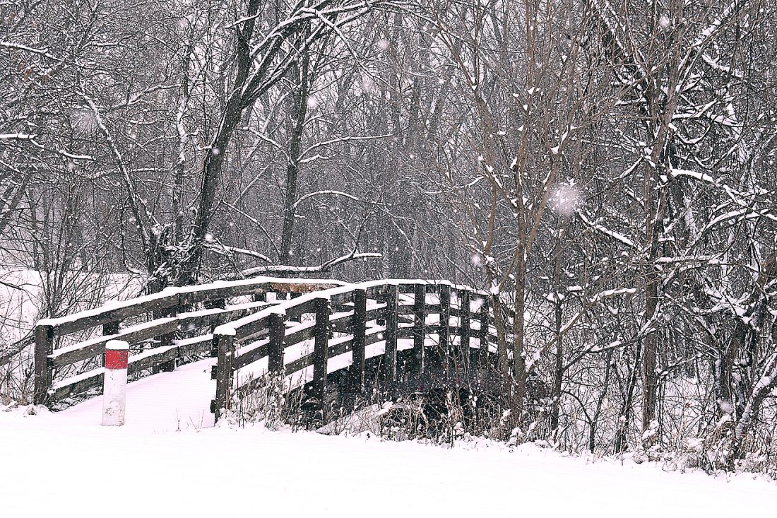 Staff photo by Clay Schuldt The first significant snow of the winter turns the footbridge near Minnecon Park into a winter postcard. A total of 2.9 inches of snow fell on New Ulm on Tuesday, with more expected on Friday.