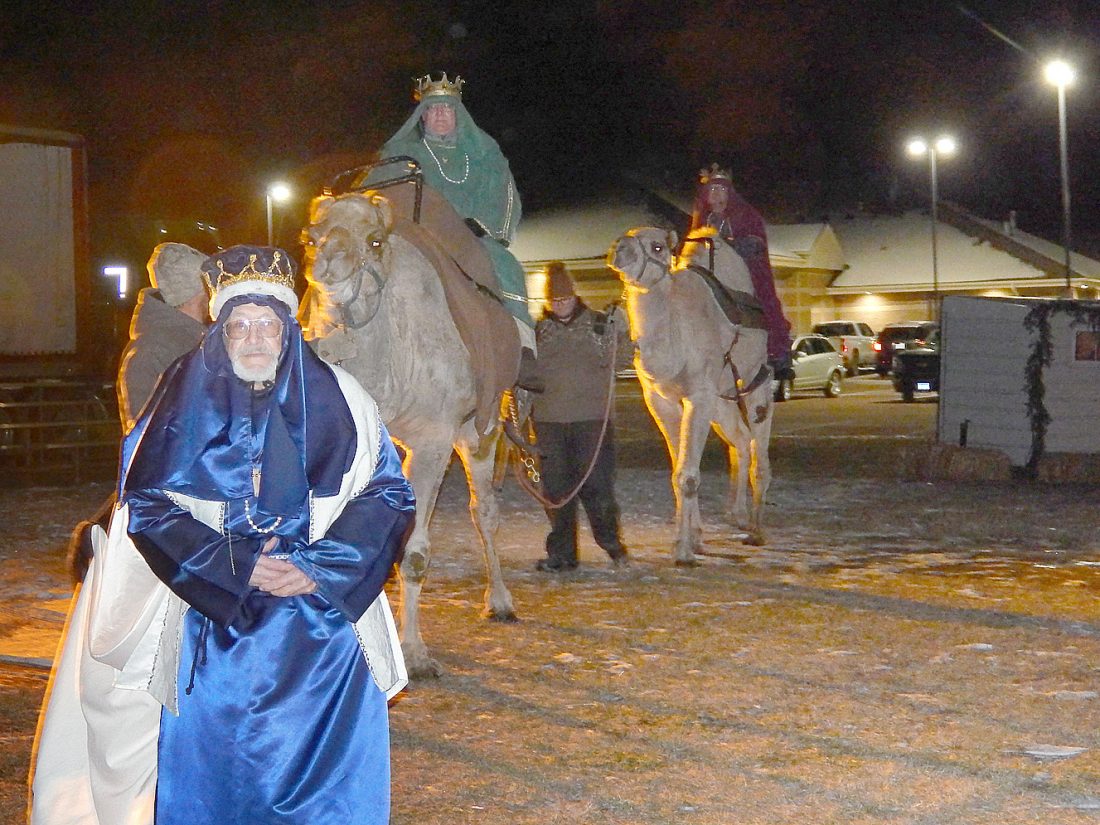 - Staff photo by Fritz Busch Springfield Nativity Pageant Kings Ed Meidl, left; and Pastor Rick Frederickson, center, walk and ride camels in the pageant rehearsal Thursday just west of the Springfield Community Center.
