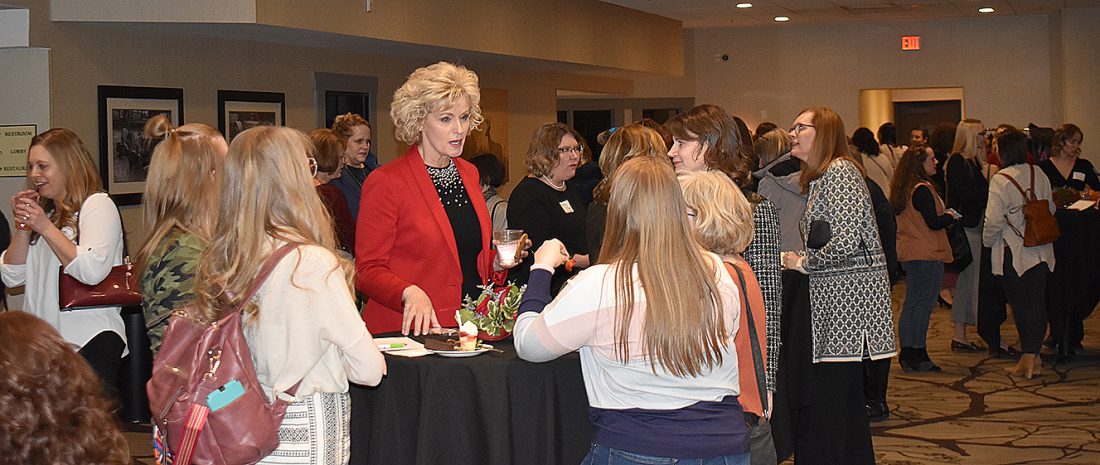 Speaker Holly Hoffman mingles with some of the women at the Mingle with a Purpose networking event before her keynote speech.