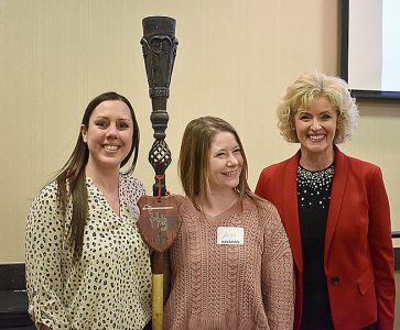 Dani Polzin and Angel Schaffer hold speaker Holly H