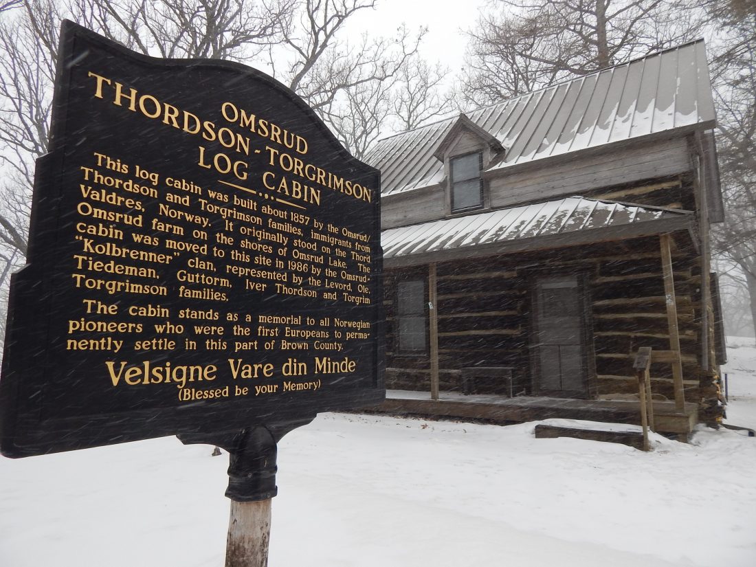 Staff photo by Fritz Busch Brown County commissioners unanimously approved a $7,640 low bid by Artisan Restoration of Kasota Tuesday for repairs on the Omsrud Thordson-Torgrimson log cabin in Lake Hanska County Park. The cabin built in about 1857 by the families, is a memorial to all Norwegian pioneers who were the first Europeans to permanently settle in the area.
