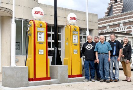 Backer was delighted to have the pump project finished. Many automotive enthusiasts in the area will enjoy seeing the old-style pumps.