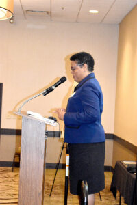 Staff photo by Clay Schuldt Windings, CEO Heather Braimbridge-Cox delivers the acceptance speech for the New Ulm Large Business of the Year Award.