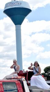 - Staff photo by Clay Schult Newly crowned Fairfax royalty Kayln Hellendrung (left) and princess Abigail Lee ride in the Dayz of Thunder parade.