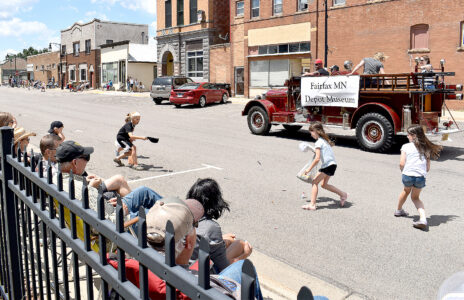 - Staff photo by Clay Schult Children rush to gather candy thrown from an old fire truck advertising the Depot Museum. The Fairfax Depot Museum was open before and after the parade as part of the Dayz of Thunder celebration.
