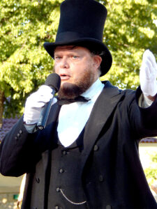 Staff photo by Fritz Busch Abraham Lincoln (Bryce Stenzel of Mankato) recites the Gettysburg Address at a Salute to Veterans event hosted Wednesday by American Legion Post 132 in German Park.