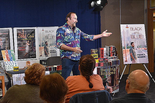 “Black and Blue” is his most recent book, released this year. The mystery is based on the murder of a police officer’s 19-year-old fiancée in Minneapolis. Weber gave the back story on the real mystery that inspired the case.