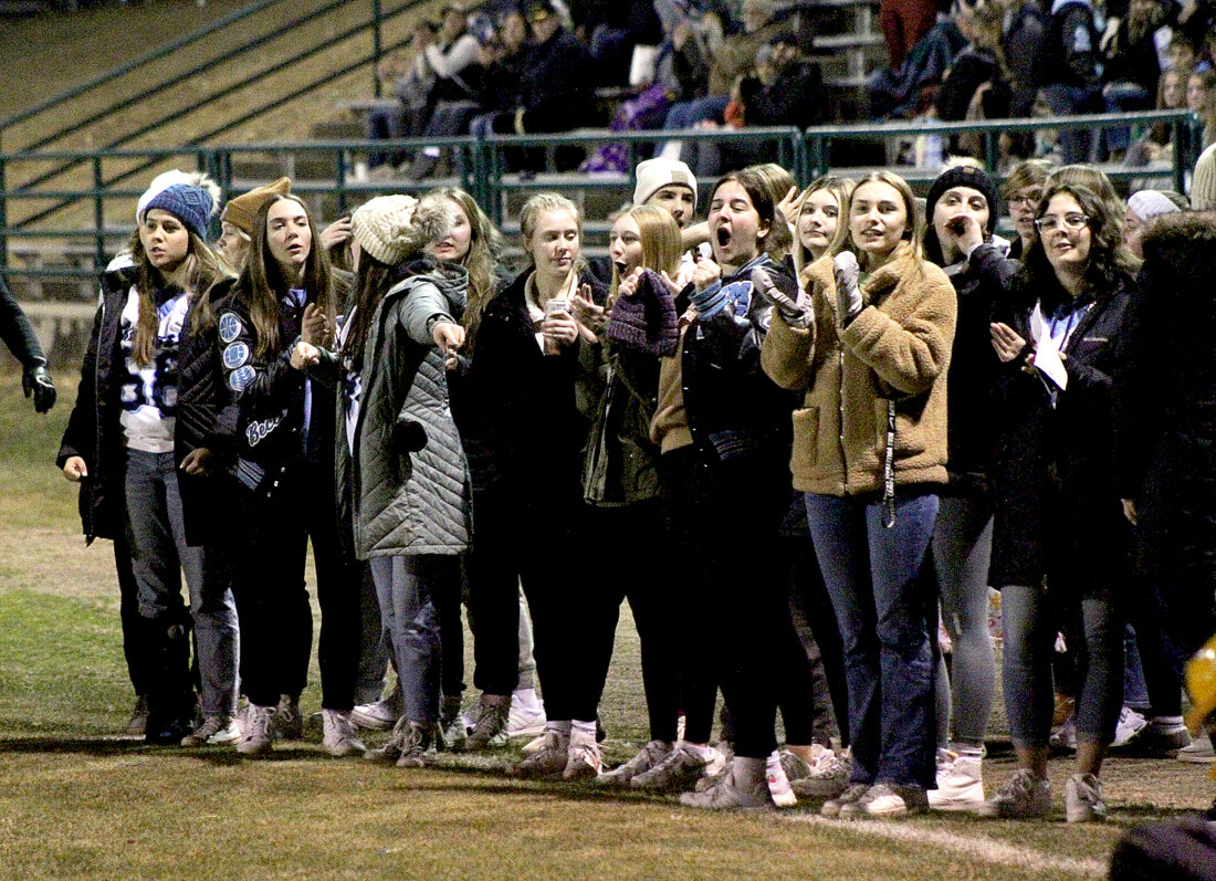 Minnesota Valley Lutheran students cheer during their Section 3AA football playoff game at Johnson Field on Tuesday night. The Chargers hosted Sibley East. See story on page 10A.